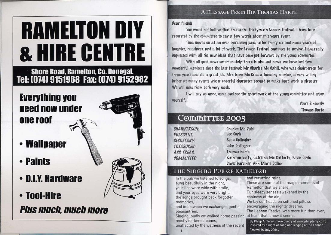 2005 Ramelton Lennon Festival publishes a poem